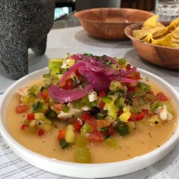 Super spacious! The restaurant has low light setting and modern look, the service could be a bit faster, esp when there were only 2 tables. The best part of this place was the bottomless cantoritos!! We ordered tostaditas de langosta, aguachile and birria chicken wings. The birria wings were pretty salty, and the breading was pretty heavy with the sauce on the outside. The aguachile was so good and spicy!